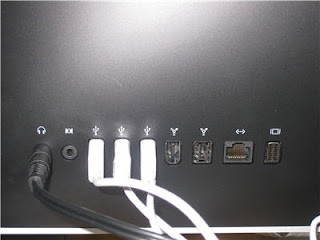 Thirdly, notice that the external sound plug is right next to the USB ports. That means that everytime someone is plugging in or taking out a USB device from the one available USB port, it’s easy to brush up against the sound cable and jostle it which then may make an (ugly) noise. Why not put the sound cable on the other side of the iMac rear?